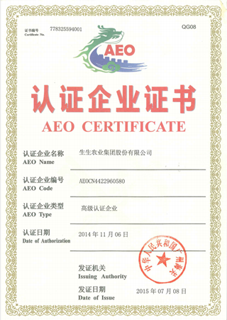 生生--AEO認證書