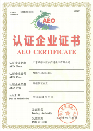 中恒--AEO認證書