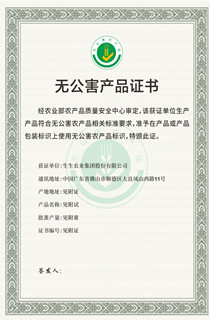 無公害產品證書