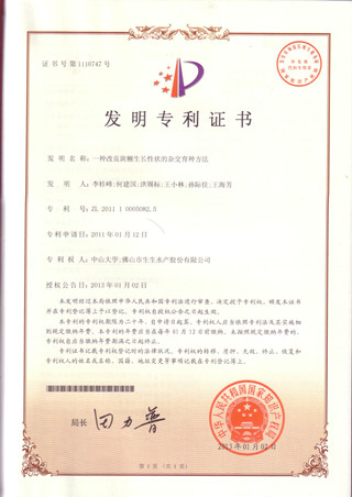 發明專利證書(一種改良斑鱖生長性狀的雜交育種方法)