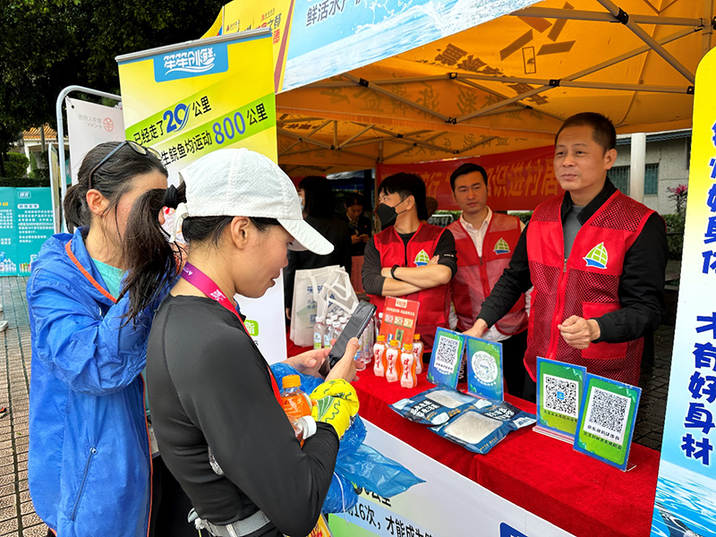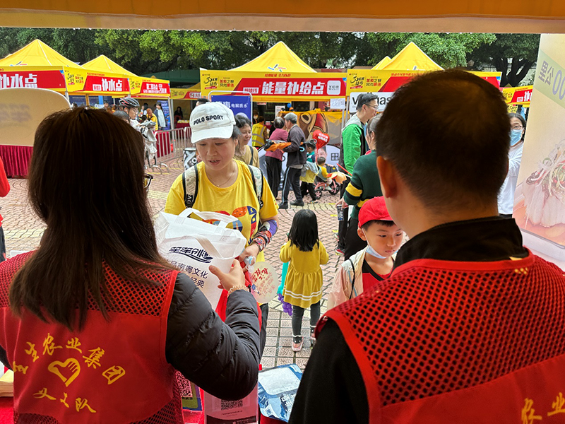 生生農業集團不僅為所有參與者免費提供補給物資,還熱情引導健兒們簽到打卡留念。