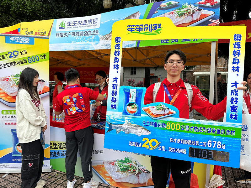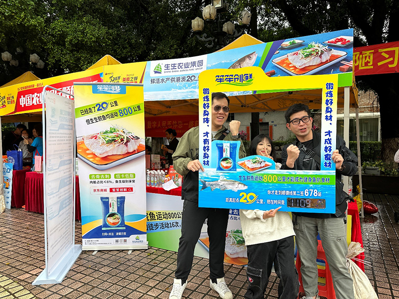 在生生集團卡位,集團旗下的明星產品“健身魚扒”吸引了眾多關注,“鍛煉好身材才成好食材”,這塊源自“健身鯇魚”的魚扒吸引了現場徒步健兒、網絡達人的駐足咨詢,紛紛領券購買。