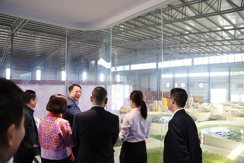 隨后,來訪領導移步至生生農業集團的品牌體驗館、現代化循環水養殖中心,深入了解生生農業集團深耕水產養殖30年的成果與經驗。考察團一行對生生農業集團的全產業鏈運營管理、智慧漁業養殖模式、水產品加工項目所取得的成效表示高度贊許,并對集團的未來發展提出寶貴建議及深切期許。
