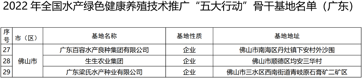 日前,全國水產(chǎn)技術(shù)推廣總站發(fā)布《關(guān)于做好2023年水產(chǎn)綠色健康養(yǎng)殖技術(shù)推廣“五大行動(dòng)”實(shí)施工作的通知》,公布了2022年度水產(chǎn)綠色健康養(yǎng)殖技術(shù)推廣“五大行動(dòng)”骨干基地認(rèn)定情況信息表,全國共認(rèn)定2022年度骨干基地1265個(gè),生生農(nóng)業(yè)集團(tuán)成功入選。
