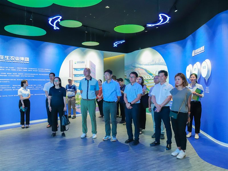 調研組一行首先參觀了生生農業(yè)集團的品牌體驗館、現代化循環(huán)水養(yǎng)殖中心,深入了解生生農業(yè)集團在水產養(yǎng)殖方面的經驗和成果。周永權高級主任對生生農業(yè)集團的全產業(yè)鏈運營管理、智慧漁業(yè)養(yǎng)殖模式、水產品加工項目等所取得的成效表示高度贊許。