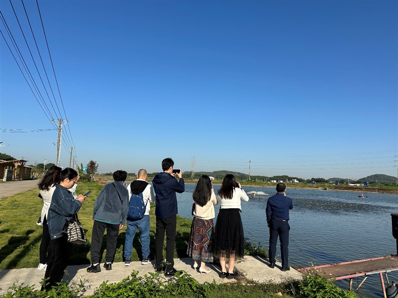 團隊一行首先參觀了國家級健康養殖和生態養殖示范區——海心沙美麗漁場,優美的生態環境讓所有人為之贊嘆。在工作人員的講解下,大家深入了解了桑基魚塘養殖、四大家魚養殖、順德魚生食材魚養殖、尾水處理系統等相關內容,對現代漁業有了全新的認識,深刻體會到了人與自然和諧共生的美好。