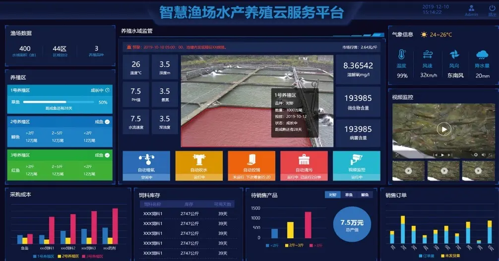 此體系的打造,將自動(dòng)化、物聯(lián)網(wǎng)、大數(shù)據(jù)等信息技術(shù)與傳統(tǒng)養(yǎng)殖技術(shù)深度融合,養(yǎng)殖技術(shù)員可通過(guò)云平臺(tái)進(jìn)行水質(zhì)監(jiān)控、視頻監(jiān)控、設(shè)備遠(yuǎn)程控制和農(nóng)事任務(wù)處理等操作,能有效提升生產(chǎn)效率、降低養(yǎng)殖風(fēng)險(xiǎn)、提高養(yǎng)殖質(zhì)量,與此同時(shí),養(yǎng)殖戶、供應(yīng)商、采購(gòu)單位可通過(guò)云平臺(tái)發(fā)布相關(guān)的供應(yīng)和需求信息,實(shí)現(xiàn)高效對(duì)接和交易。